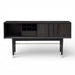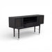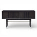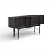 Soria Bar Cabinet pairs a smoked grey wood finish with stainless steel details for a clean, architectural look. The recessed panel façade adds subtle depth, while the elevated base keeps the silhouette light and refined. Designed with generous concealed storage for bottles, glassware, and entertaining essentials.